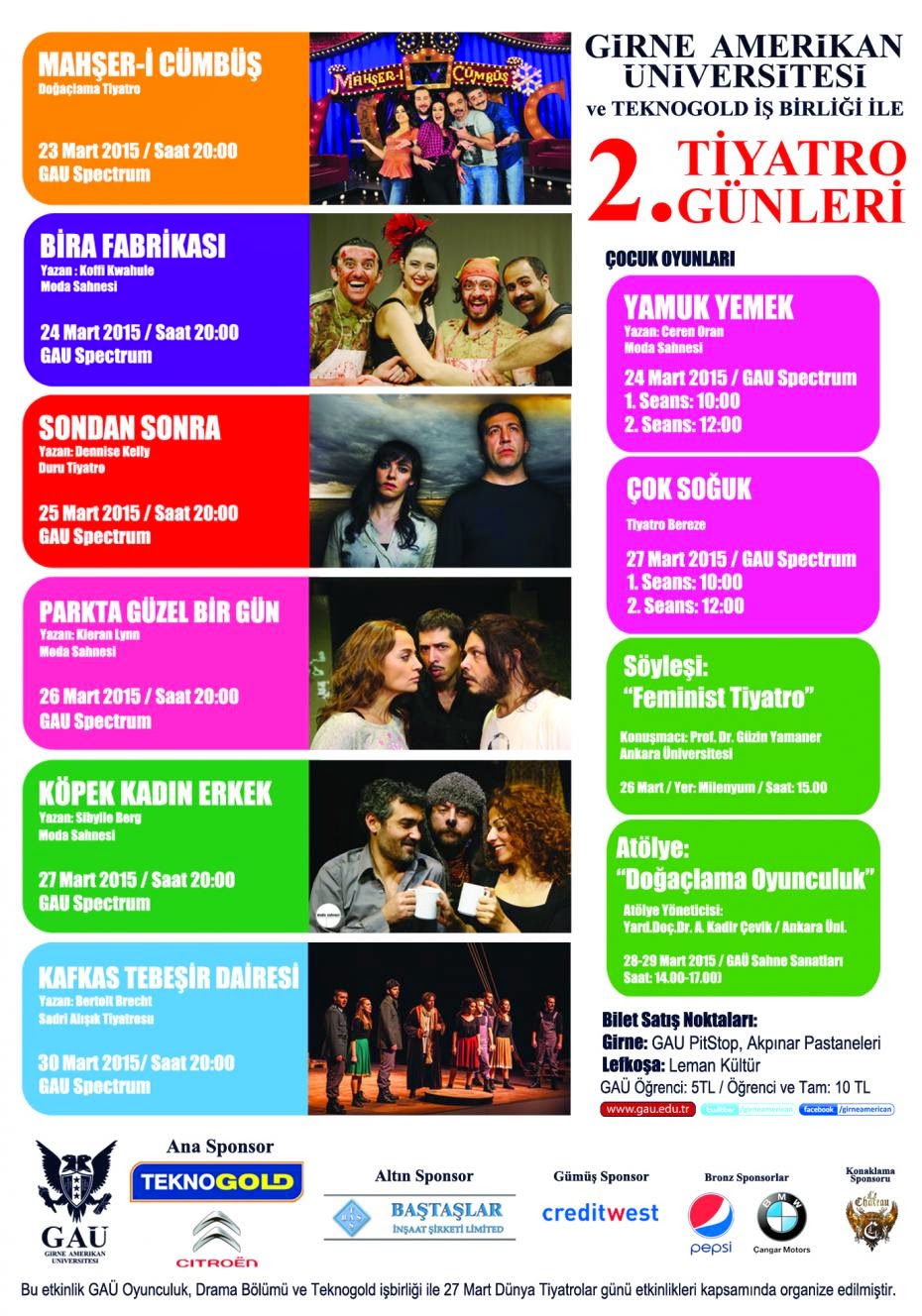 In the 2014-2015 Academic Year, Girne American University (GAU) celebrates its 30th year with its second Theater Week, under the main sponsor of TEKNOGOLD, GAU hosts with well-known plays and cast.